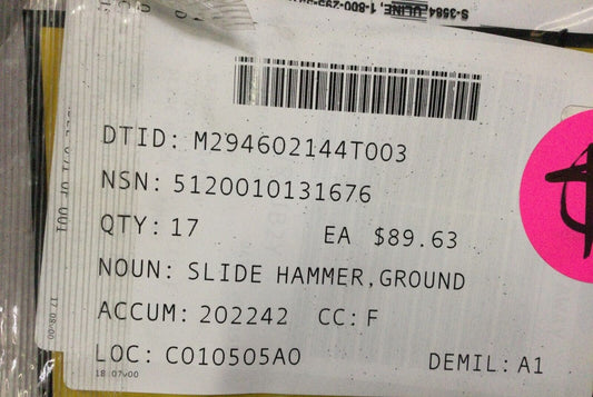 1EA Ground Rod Slide Hammer P74-144 13226E7741 9260 5120-01-013-1676 NOS
