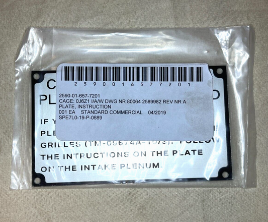 2590-01-657-7201 NAVAL SHIP INSTRUCTION PLATE 2589982