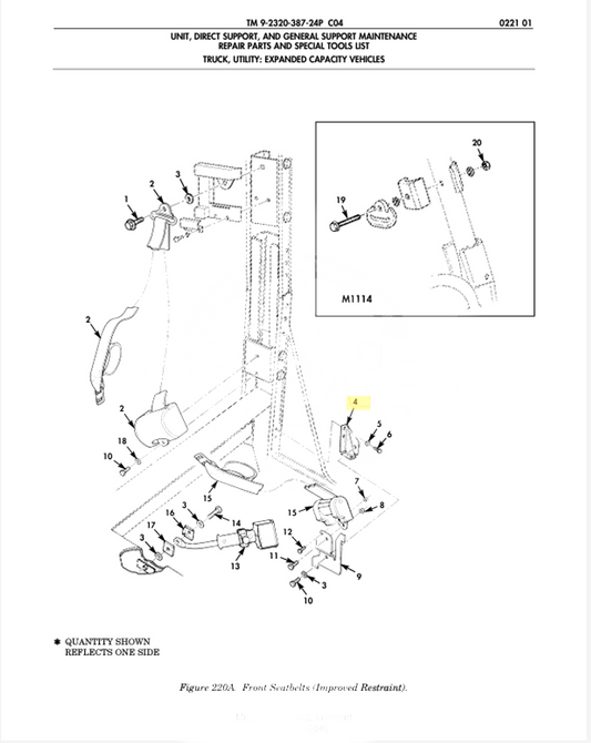 NEW M998 HMMWV 2005207-2 SEATBELT BRACKET FRONT RH 12480745 5340-01-542-4800