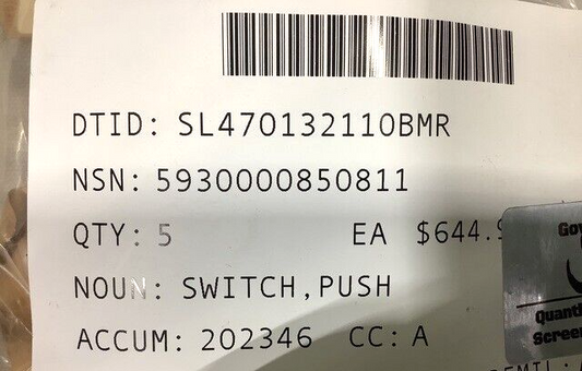 USGI MILITARY HEAVY DUTY PUSH BUTTON SWITCH 76-2241-48805-1 5930-00-085-0811 NOS