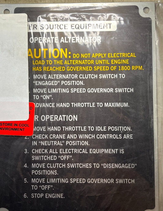 AAVR7A1 HYDRAULIC PUMP OPERATING INSTRUCTIONAL PLATE 5433070 9905-01-655-3387