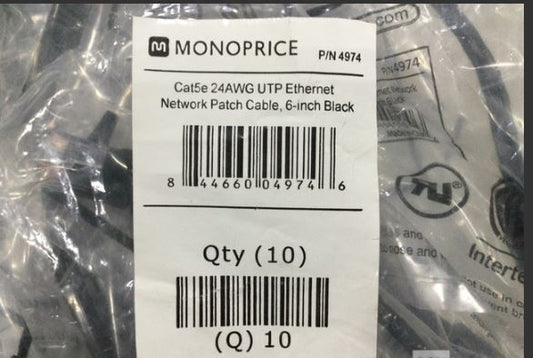 (LOT OF 50) 4974 Monoprice Cat5e Ethernet Patch Cables CAT5E 24AWG UTP 6-INCH