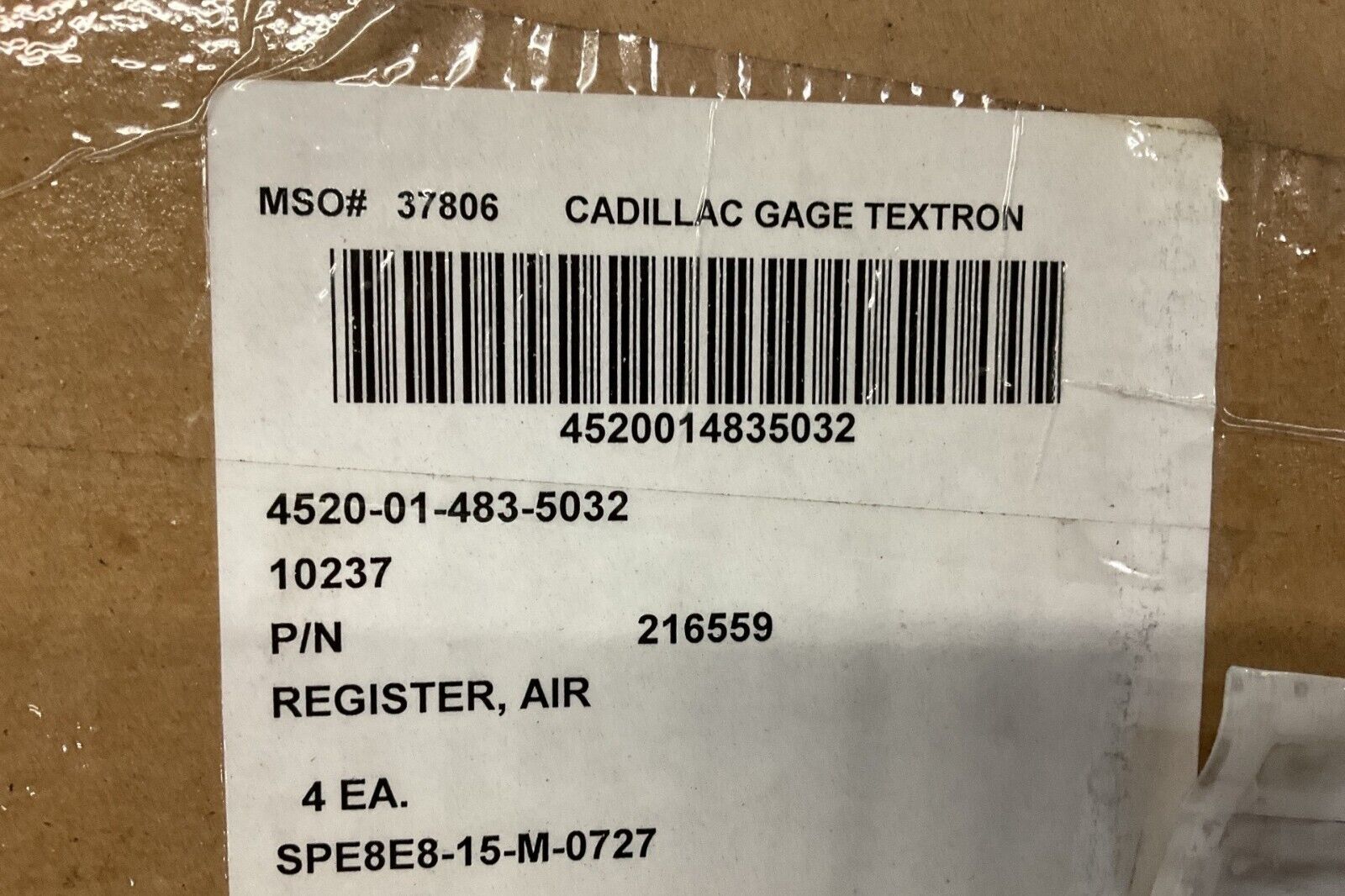 1EA ARMORED SECURITY VEHICLE, MODEL XM1117 AIR REGISTER 216559 4520-01-483-5032