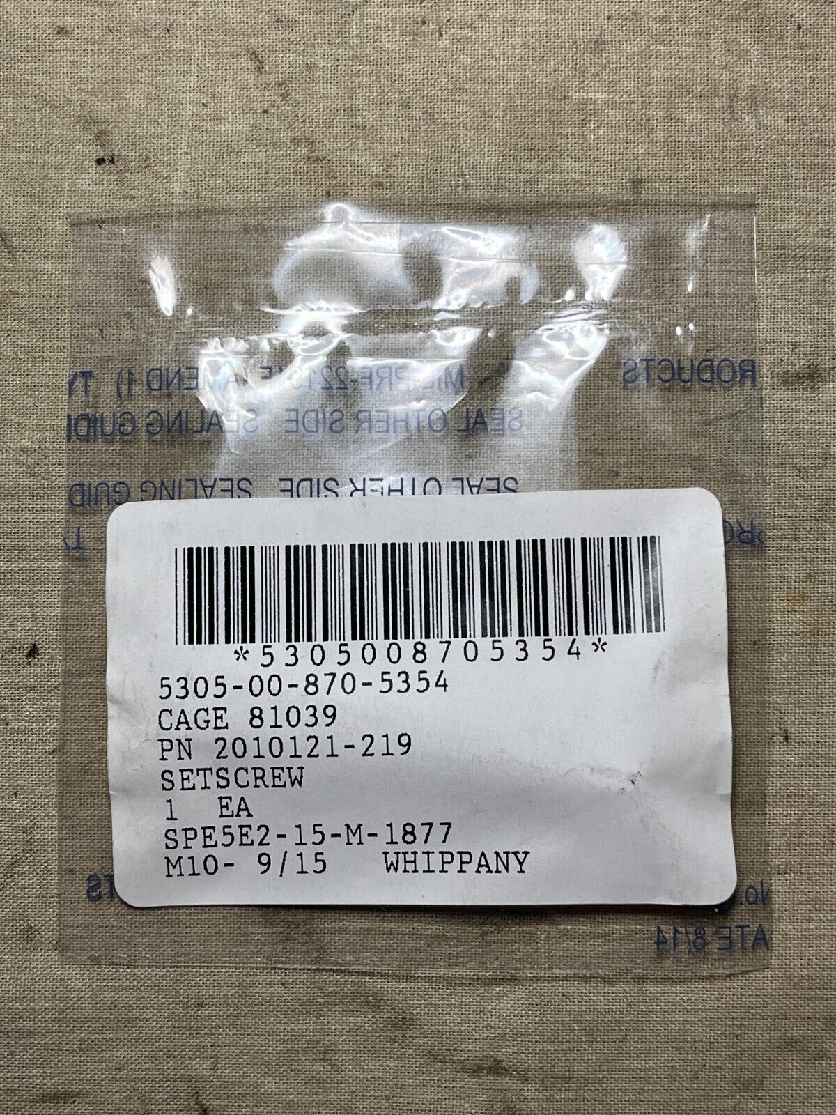 AIRCRAFT HERCULES C-130 WHIPPANY ACTUATION 2010121-219 SETSCREW 5305-00-870-5354