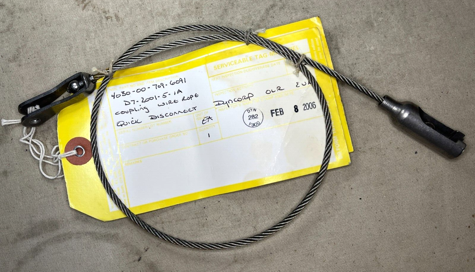 HELI UH-1 D7-2001-5-1A QUICK DISCONNECT WIRE ROPE COUPLING 4030-00-709-6091