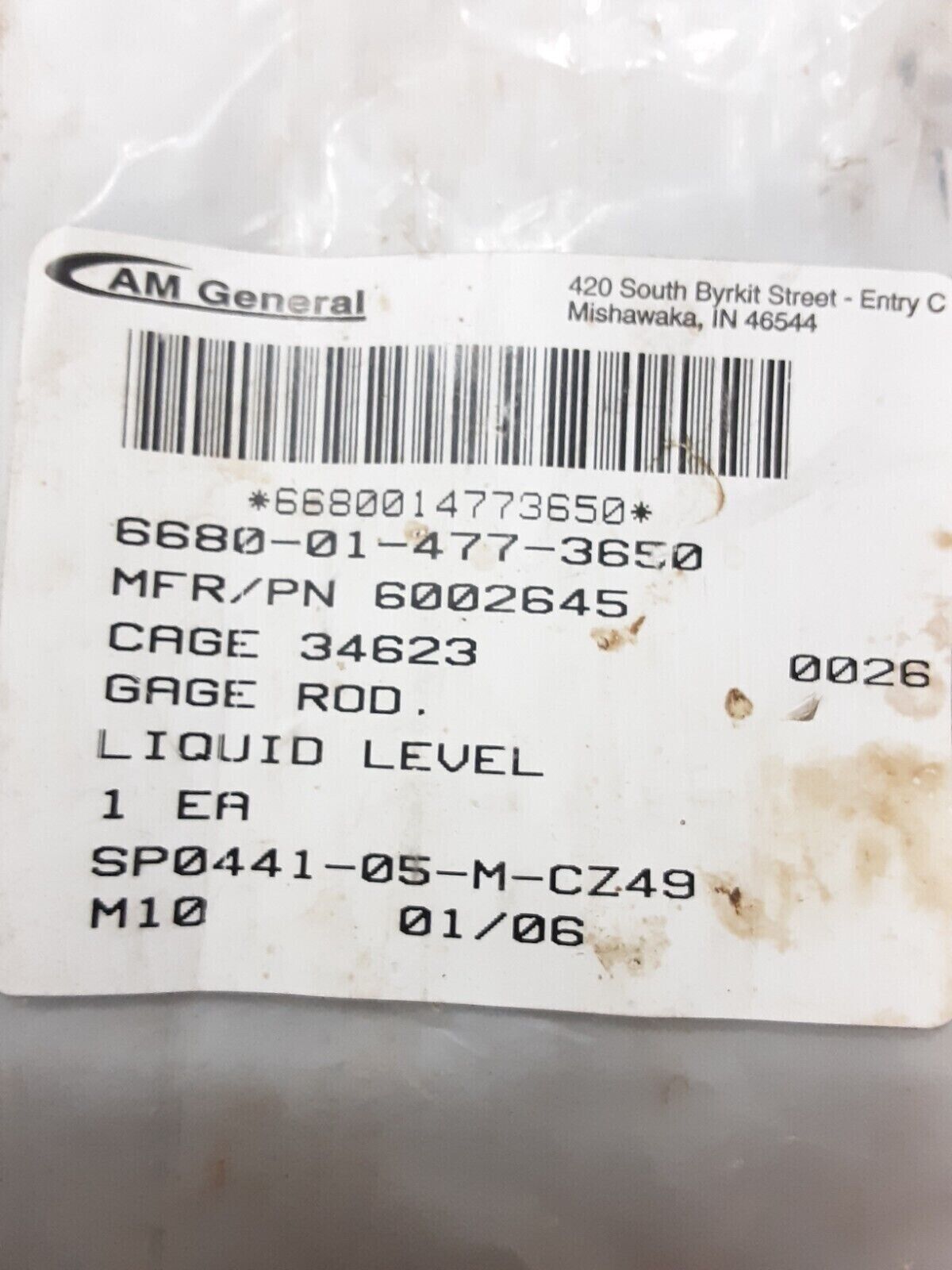 HMMWV HUMVEE M998 LIQUID LEVEL GAGE ROD DIPSTICK 29" 6002645 6680-01-477-3650