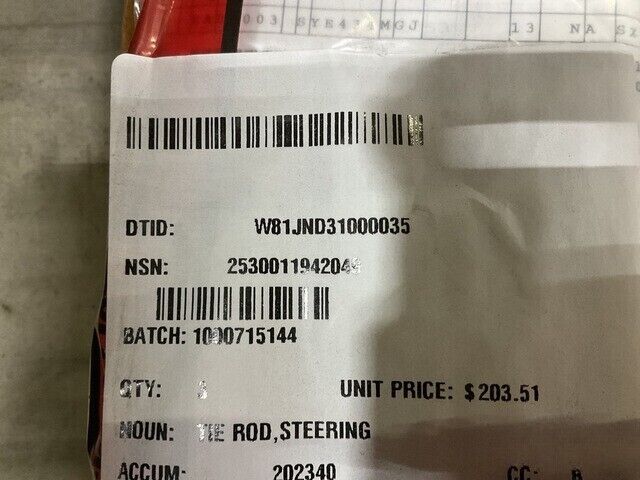 HMMWV M998 FRONT LH RH STEERING TIE ROD 12339895, 12342797, 2530-01-194-2049