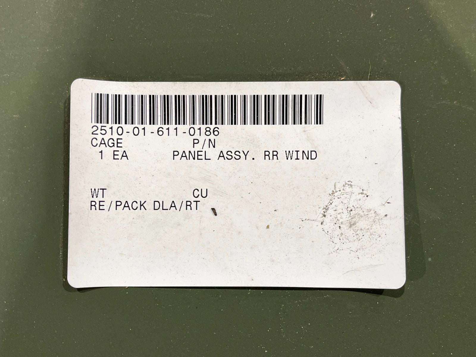 M1100 SERIES HMMWV OEM AMG REAR WINDOW CLOSEOUT PANEL 6020180 / 2510-01-611-0186