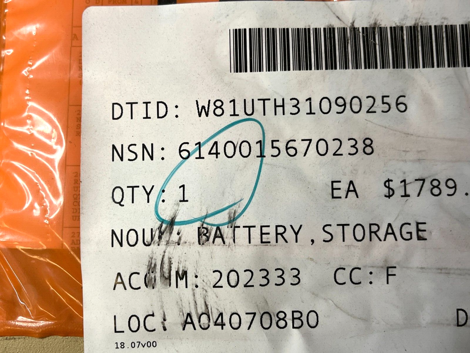 MRAP BATTERY STORAGE, BACK UP MODULE - 100 422463 4048505 6140-01-567-0238